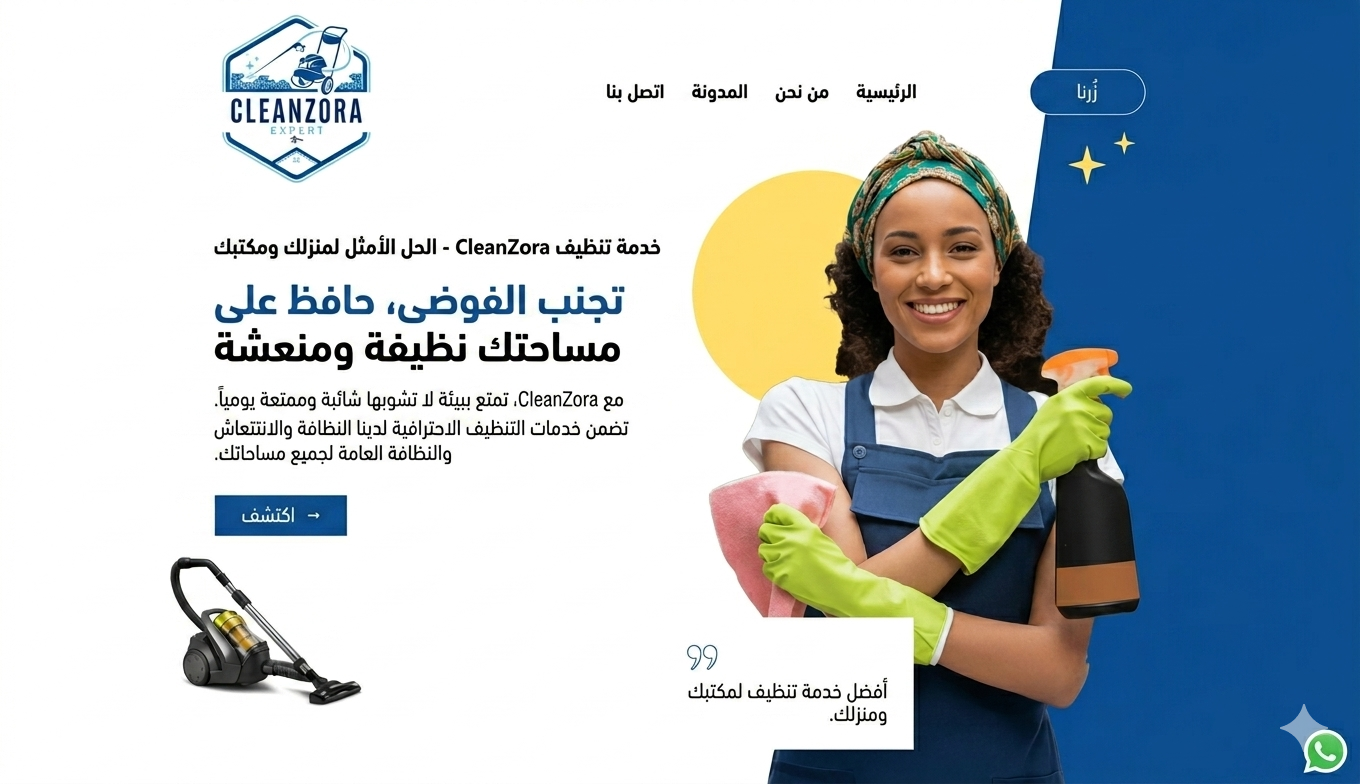 ابتكار ثوري في التنظيف! تحول CleanZora منازلك ومكاتبك إلى مساحات معيشة نظيفة ومنعشة وهادئة بخدماتها المهنية والمبتكرة.